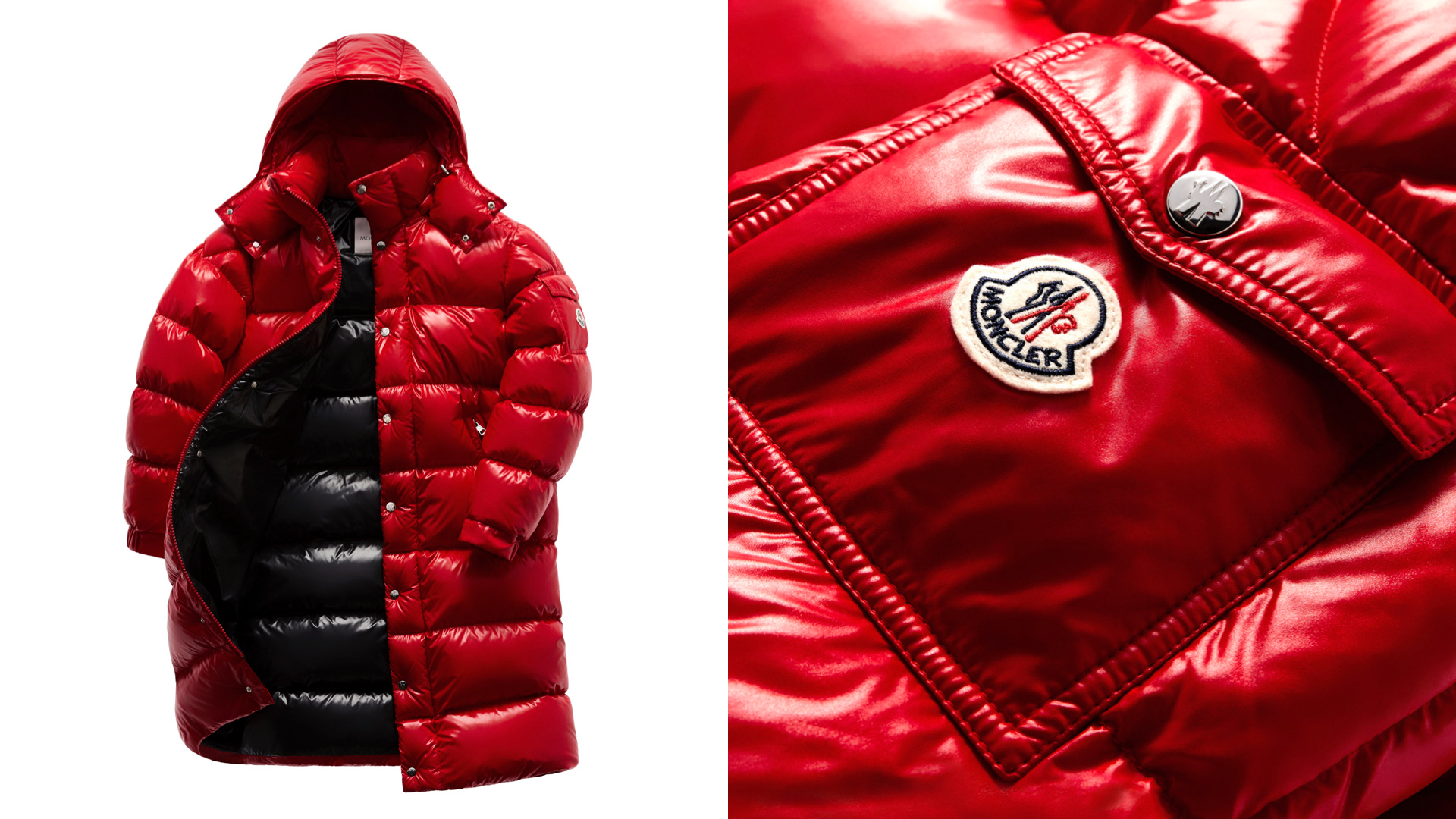 A still life photoshoot capturing the simple yet elegant details of the iconic Moncler red nylon jacket. (Ph. Marco Gazza)