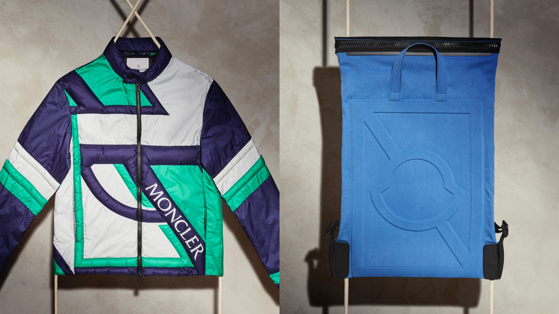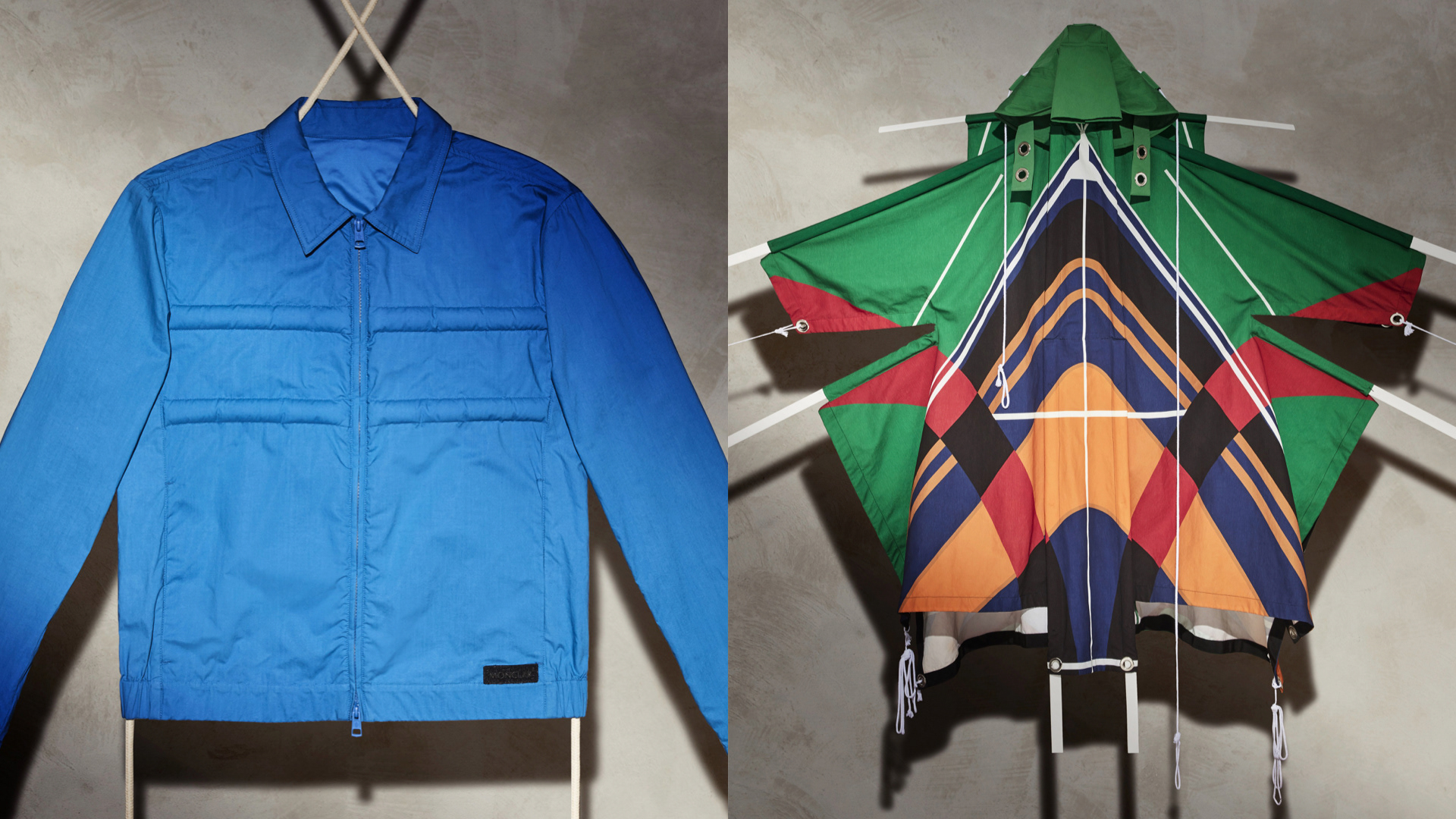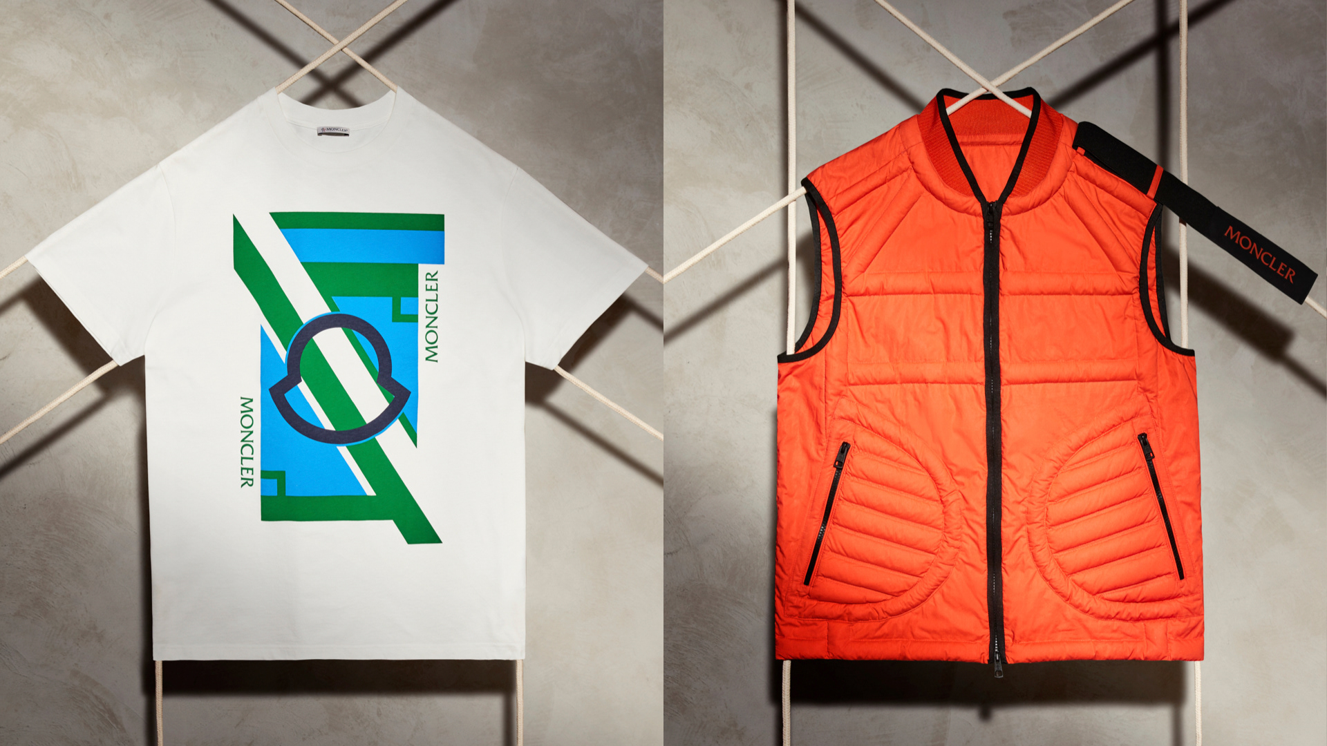 A still life shoot that presents jackets and various pieces in a concrete set, using ropes that symbolise Craig Green’s design codes. (Ph. Nicola Galli)